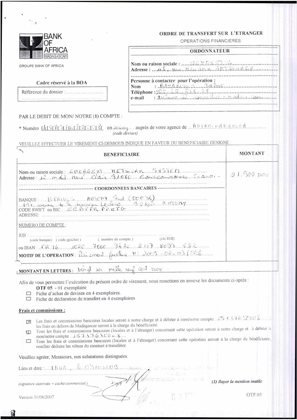 Les marchandises correspondant aux virements ont été livrées et validées, comme le confirme un autre email daté du 25 avril 2012, signé par Ranarison lui-même. - Une plainte dénuée de fondement :