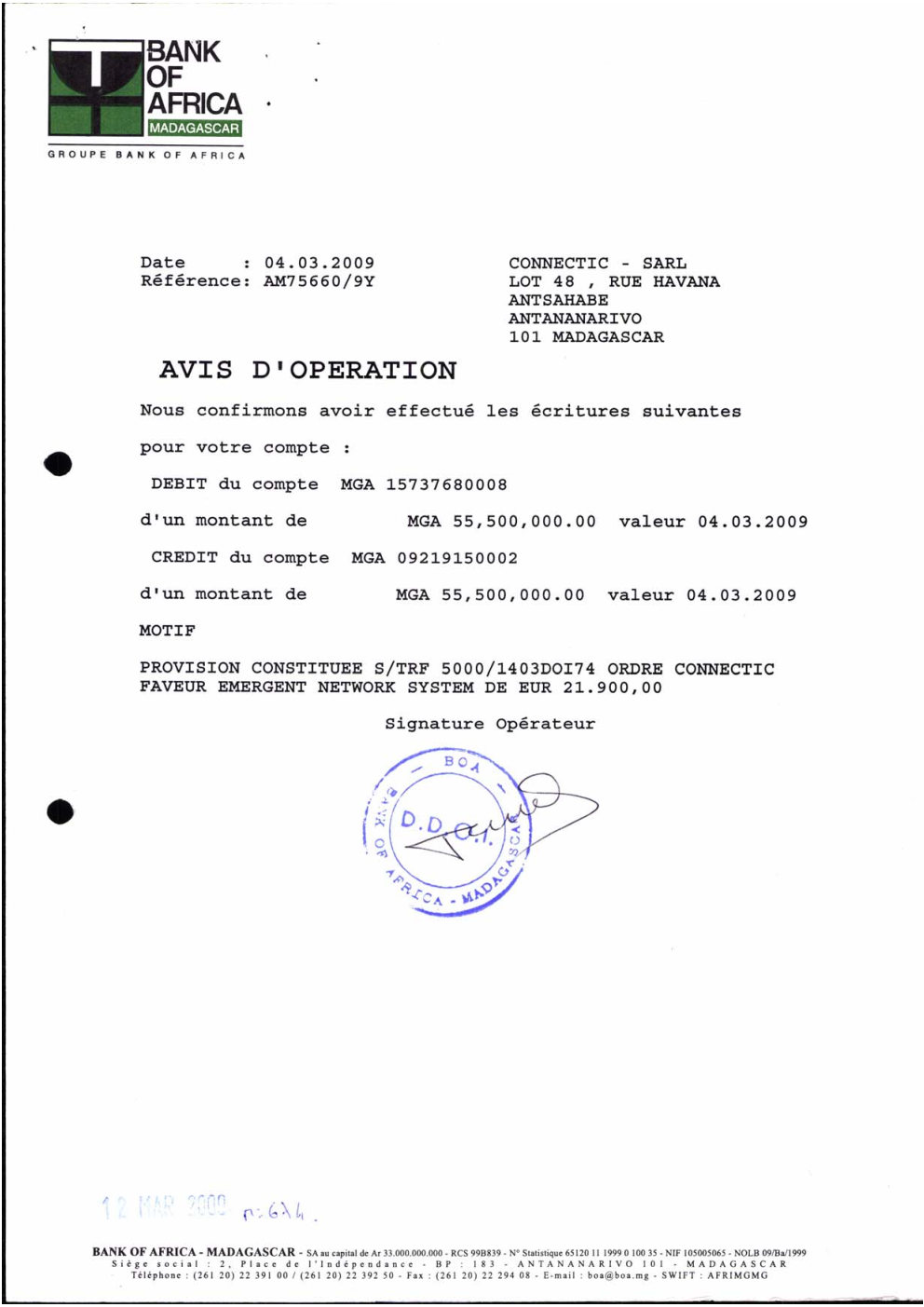 - Ranarison Tsilavo participait activement à la gestion des transactions entre Connectic et Emergent Network Systems.