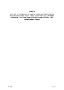 Ranarison Tsilavo affirme que le rapport du commissaire aux comptes pour 2011 :